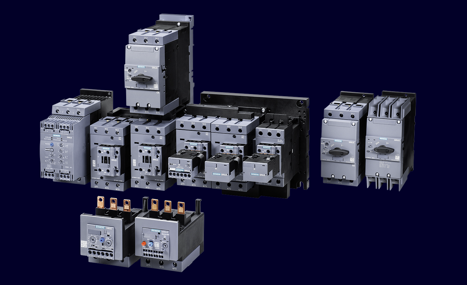 Серия SIRIUS отличается высокой степенью унификации. Принадлежности, такие как вспомогательные контакты, расцепители или поворотные приводы, являются общими для всех типоразмеров, что упрощает логистику и исключает ошибки при монтаже